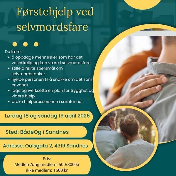 Førstehjelp ved selvmordsfare, 18 og 19 april 2026 i Sandnes.