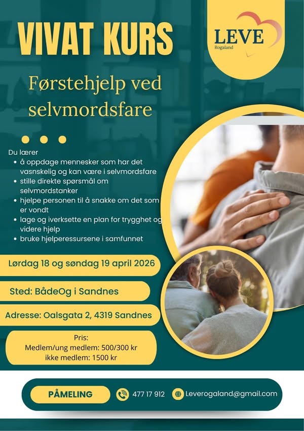 LEVE Rogaland – forening for alle berørte av selvmord inviterer til et viktig og livsviktig kurs: