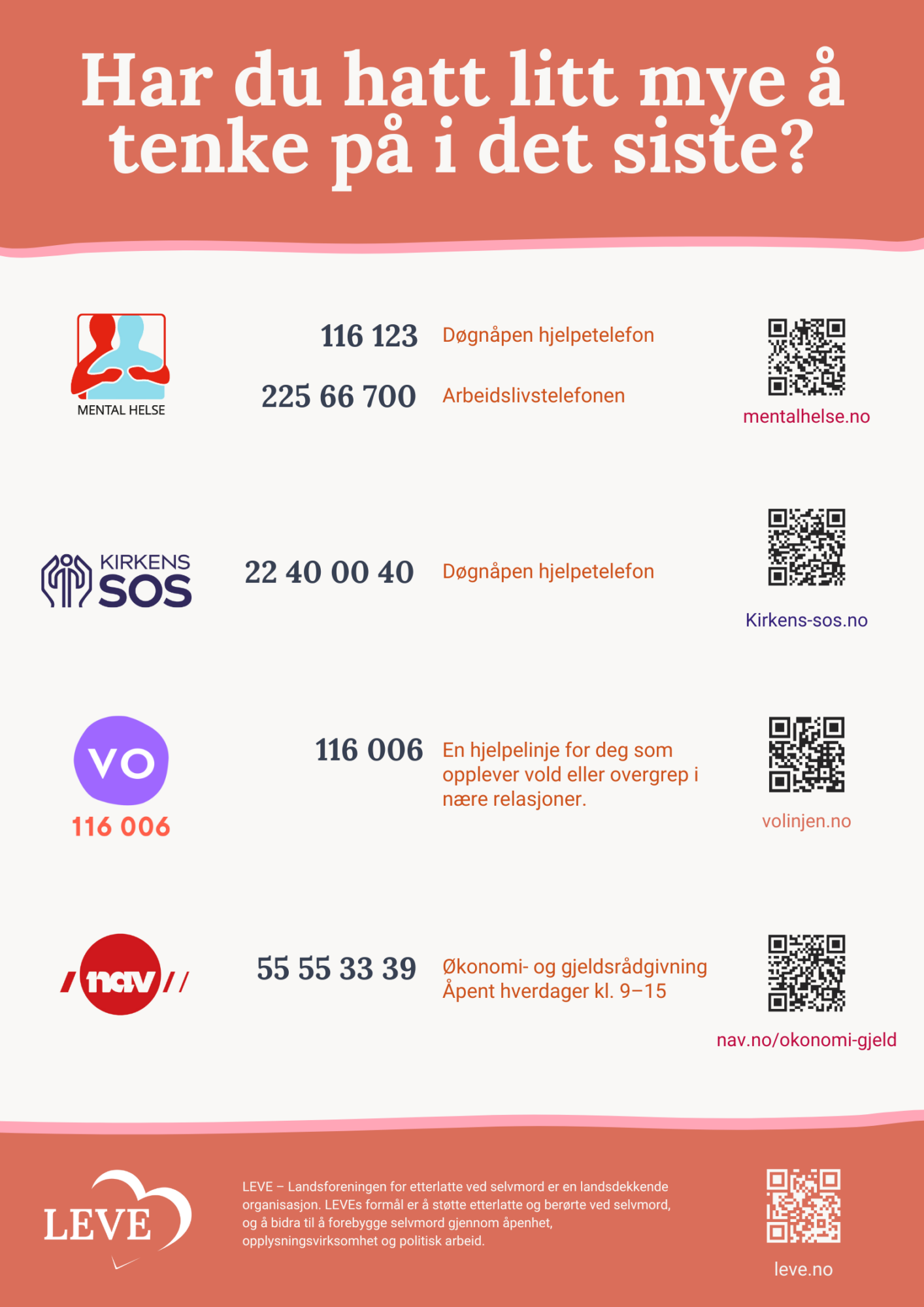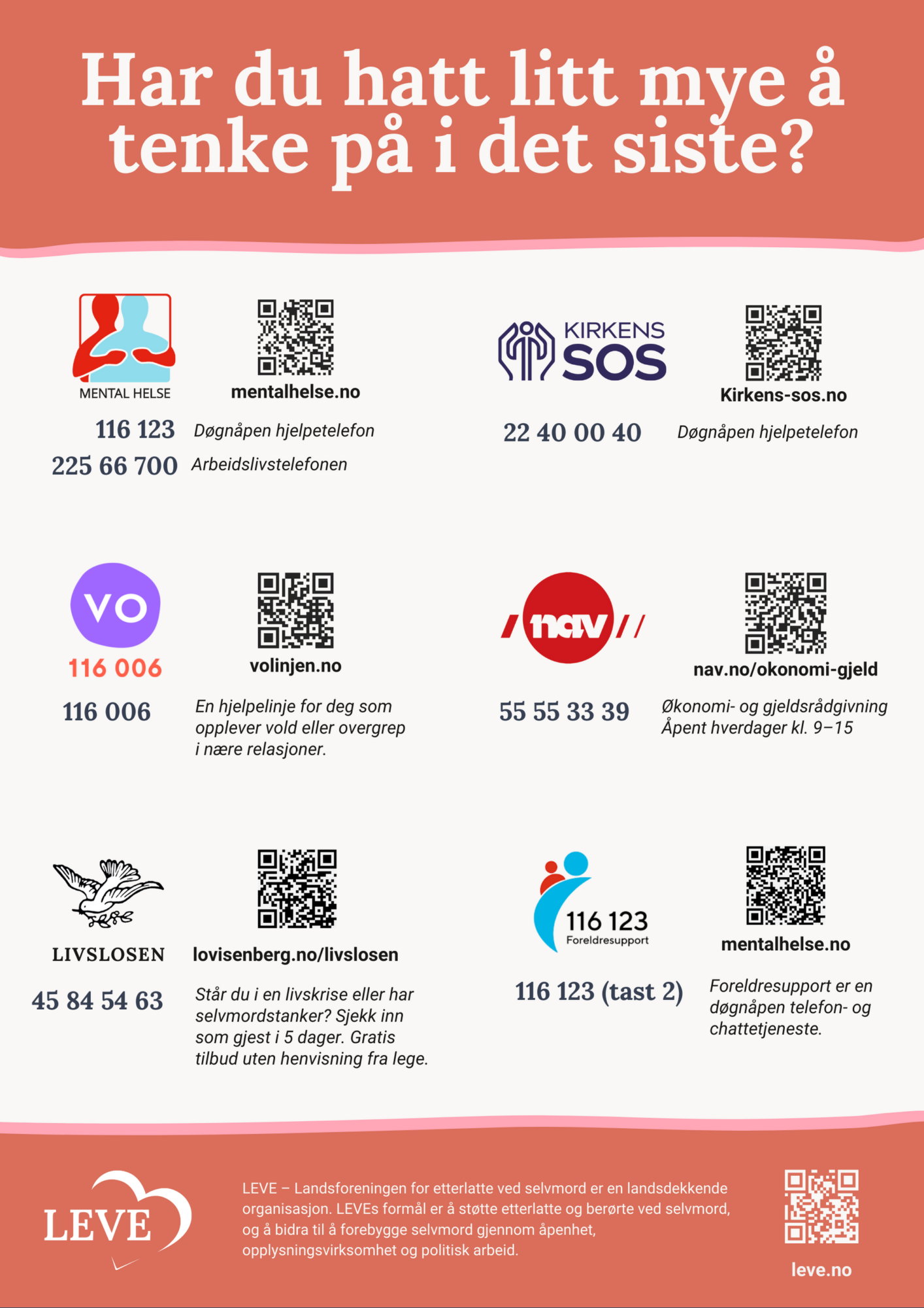 Her finner du hefter, plakater, flyers, invitasjoner og presentasjonsmaler som du kan laste ned direkte. For spørsmål og andre henvendelser, ta kontakt med veronica.poer@leve.no.