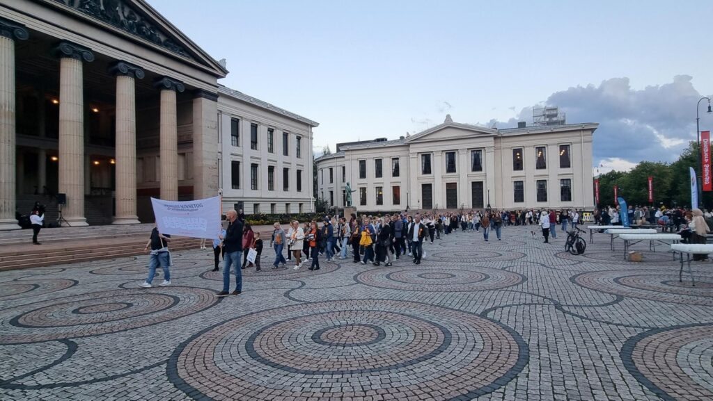 20:30 Alle lysene er tent og vi bærer dem til Stortinget der de settes i hjerteform