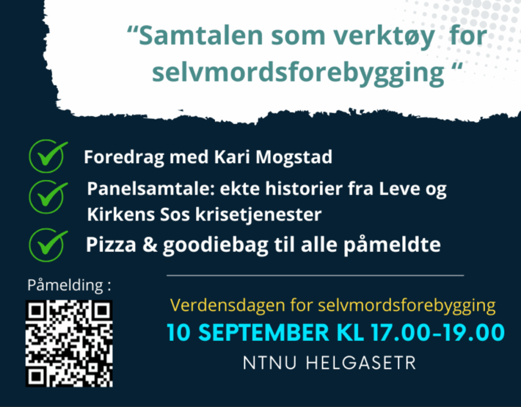 Vi har invitert lege, forfatter og foredragsholder Kari Mogstad til et foredrag om dette for studenter, medlemmer av Leve og frivillige i Kirkens SOS i Trøndelag. Etter foredraget blir det en panelsamtale der de som ønsker det kan stille spørsmål.